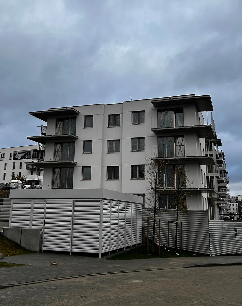 2025.09.29 - Budynek 8 - Widok na ścianę północną oraz Budynek 7 - Widok na ścianę zachodnią